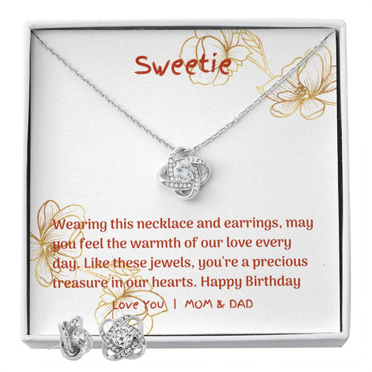 Bond of Eternity: Love Knot Necklace and Earring Set for Daughters