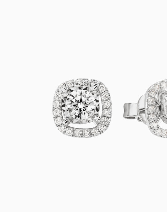 3.0 CT. T.W. Cushion Shaped Diamond Halo Stud Earrings in 18K White Gold