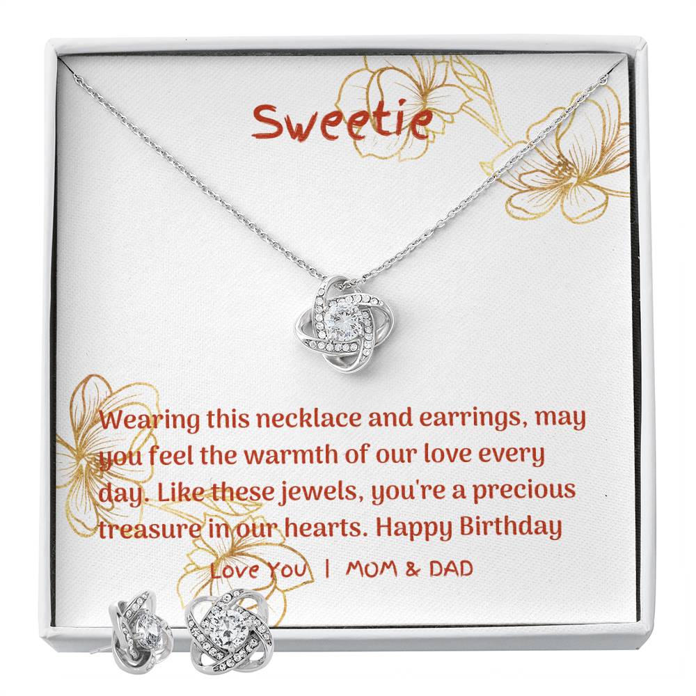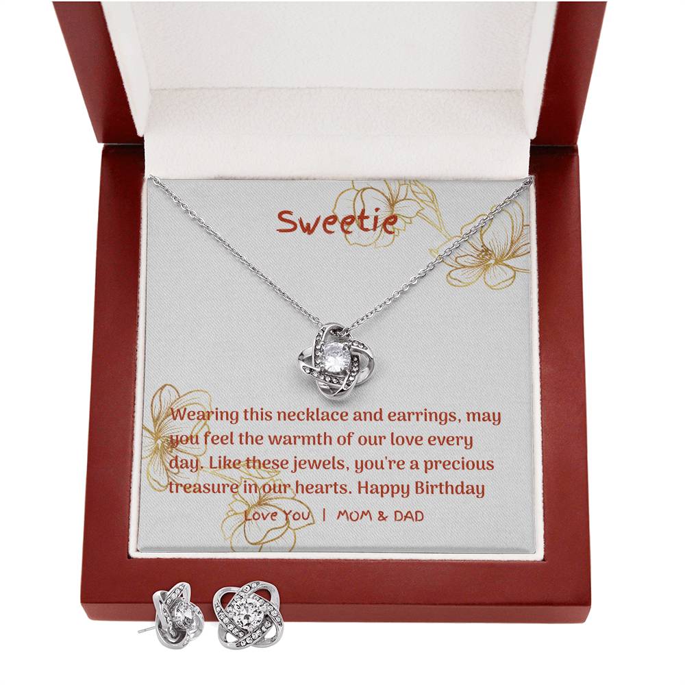 Bond of Eternity: Love Knot Necklace and Earring Set for Daughters