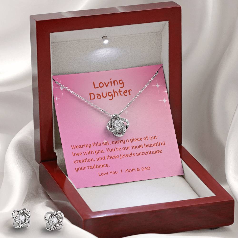 Gift For Daughters: Love Knot Necklace and Earring Set