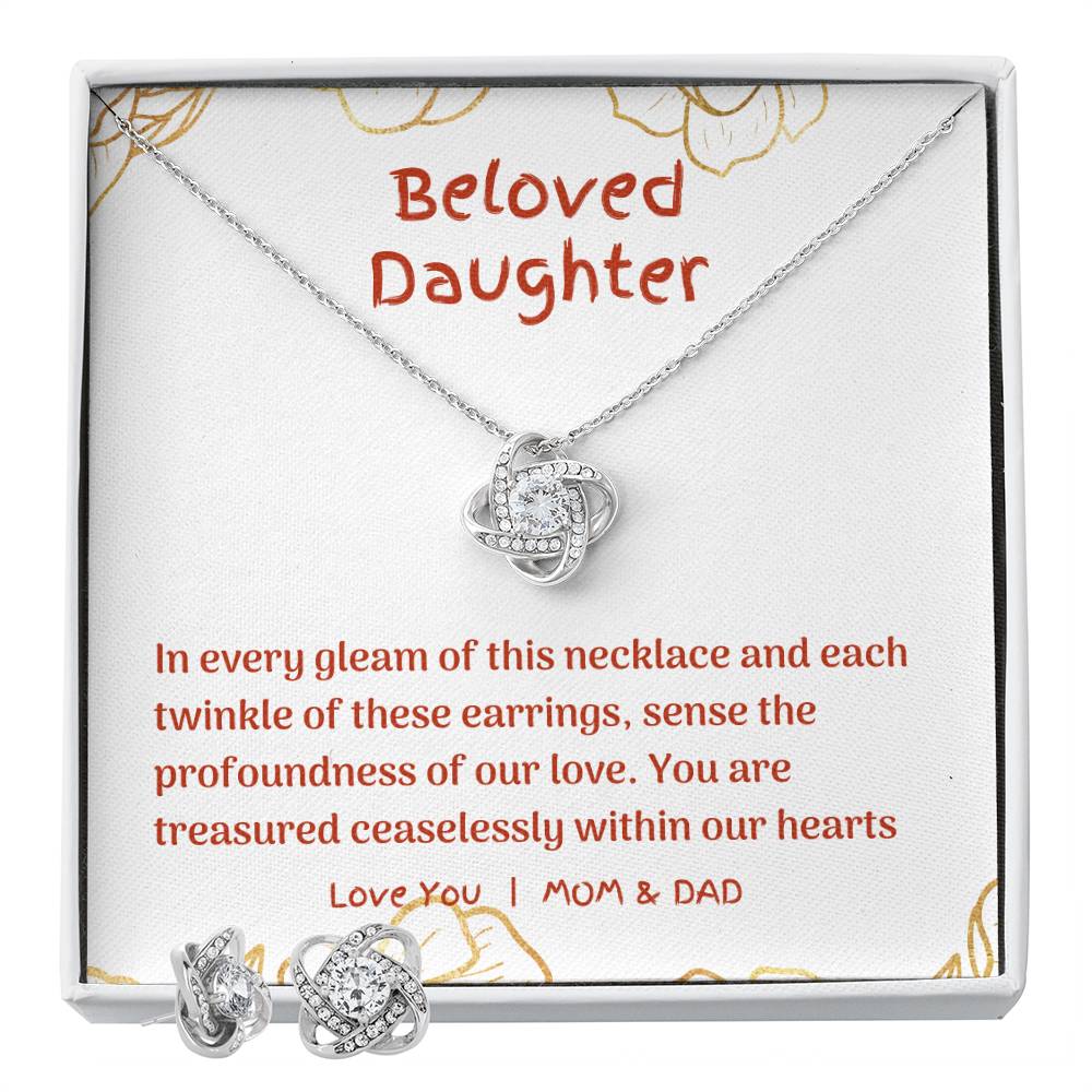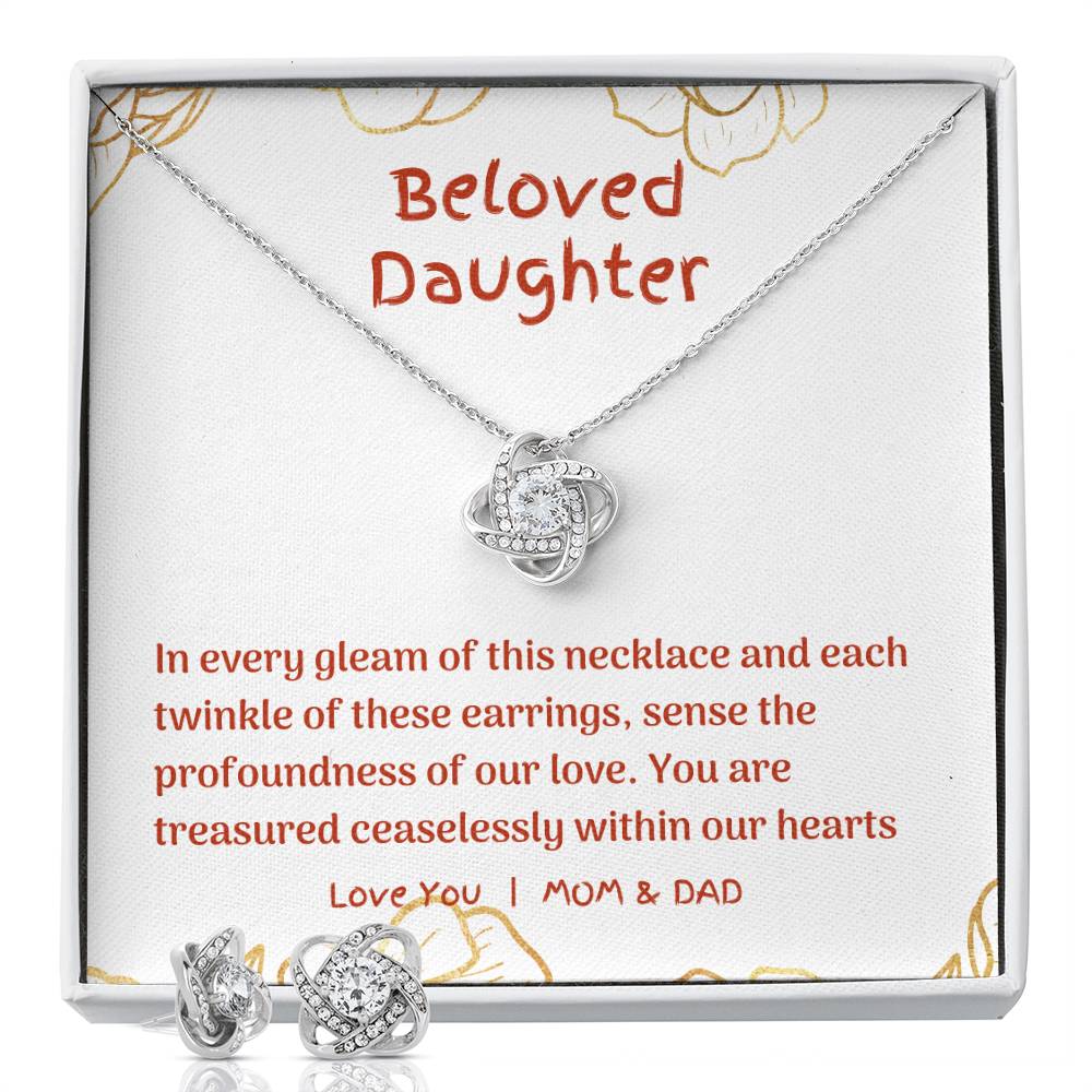 Forever Linked: Radiant Love Knot Necklace and Earring Set for Daughters