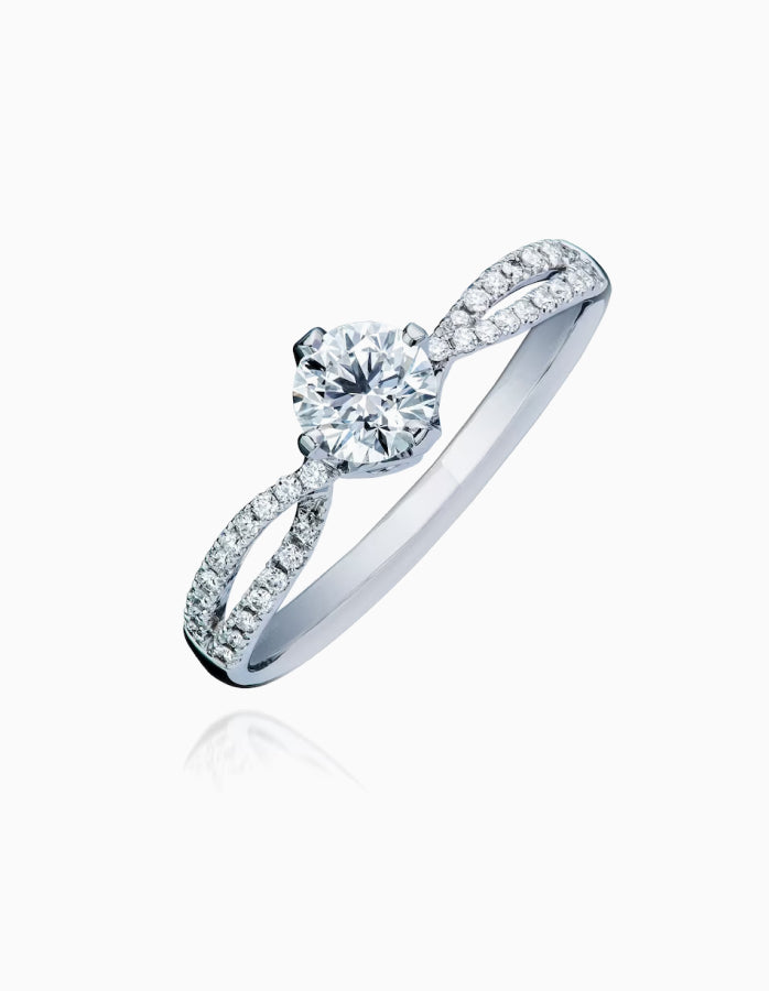 Indulge in luxury with our Elegant 1 Ct. Round Cut Diamond Engagement Ring. The stunning twisted band design, handmade with exquisite craftsmanship, sets this ring apart. Made from luxurious 10K white gold, it's the perfect symbol of love and commitment.