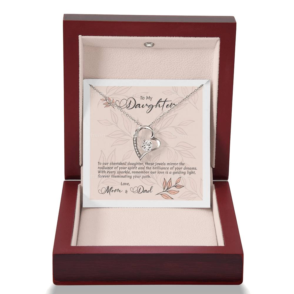 [To our cherished daughter, these jewels mirror the radiance of your spirit and the brilliance of your dreams.