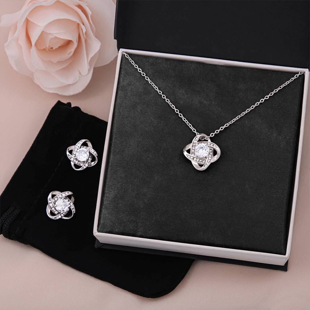 Surprise your loved one with this gorgeous Love Knot Earring & Necklace Set!