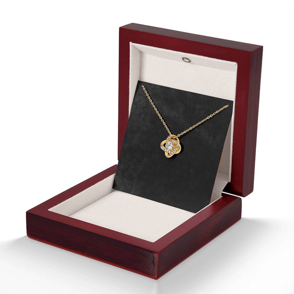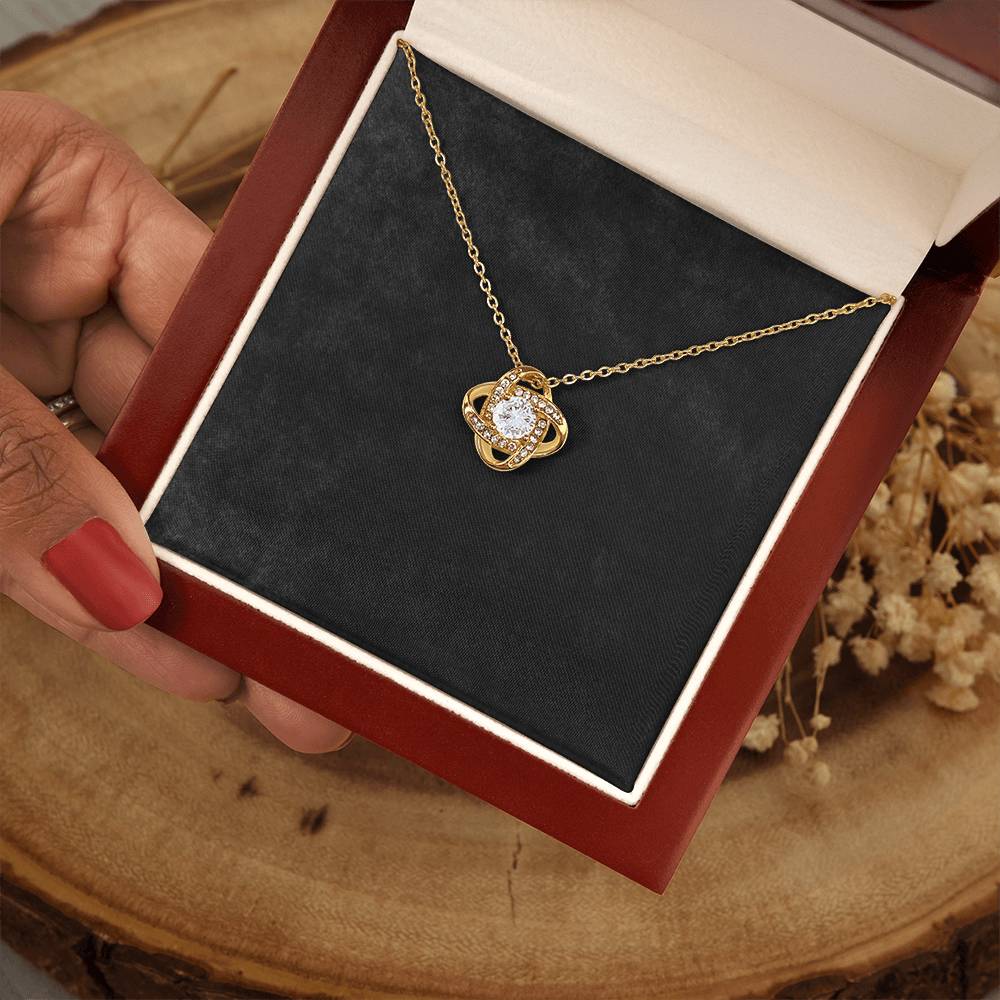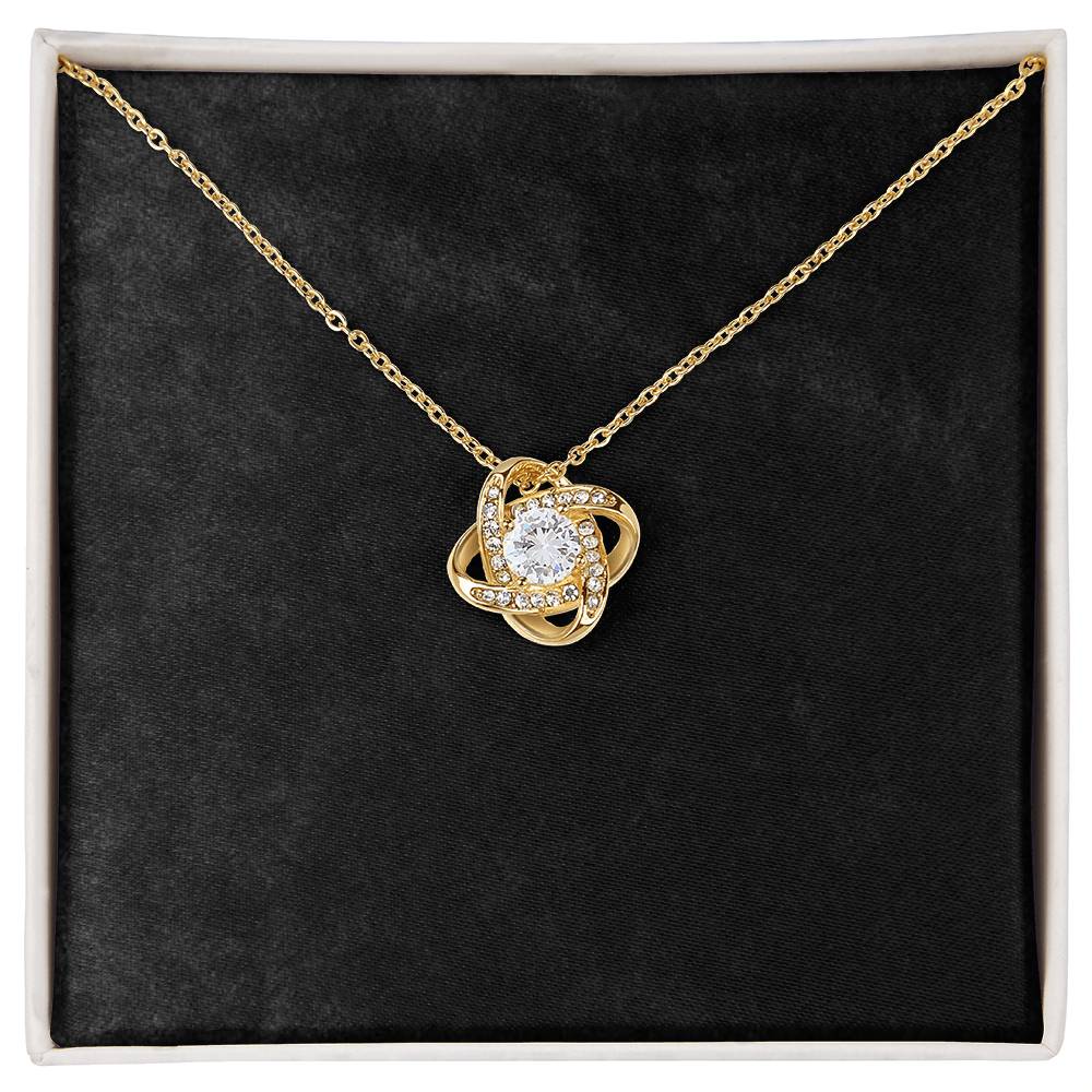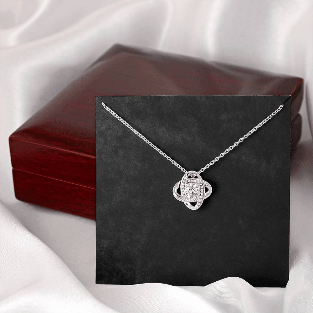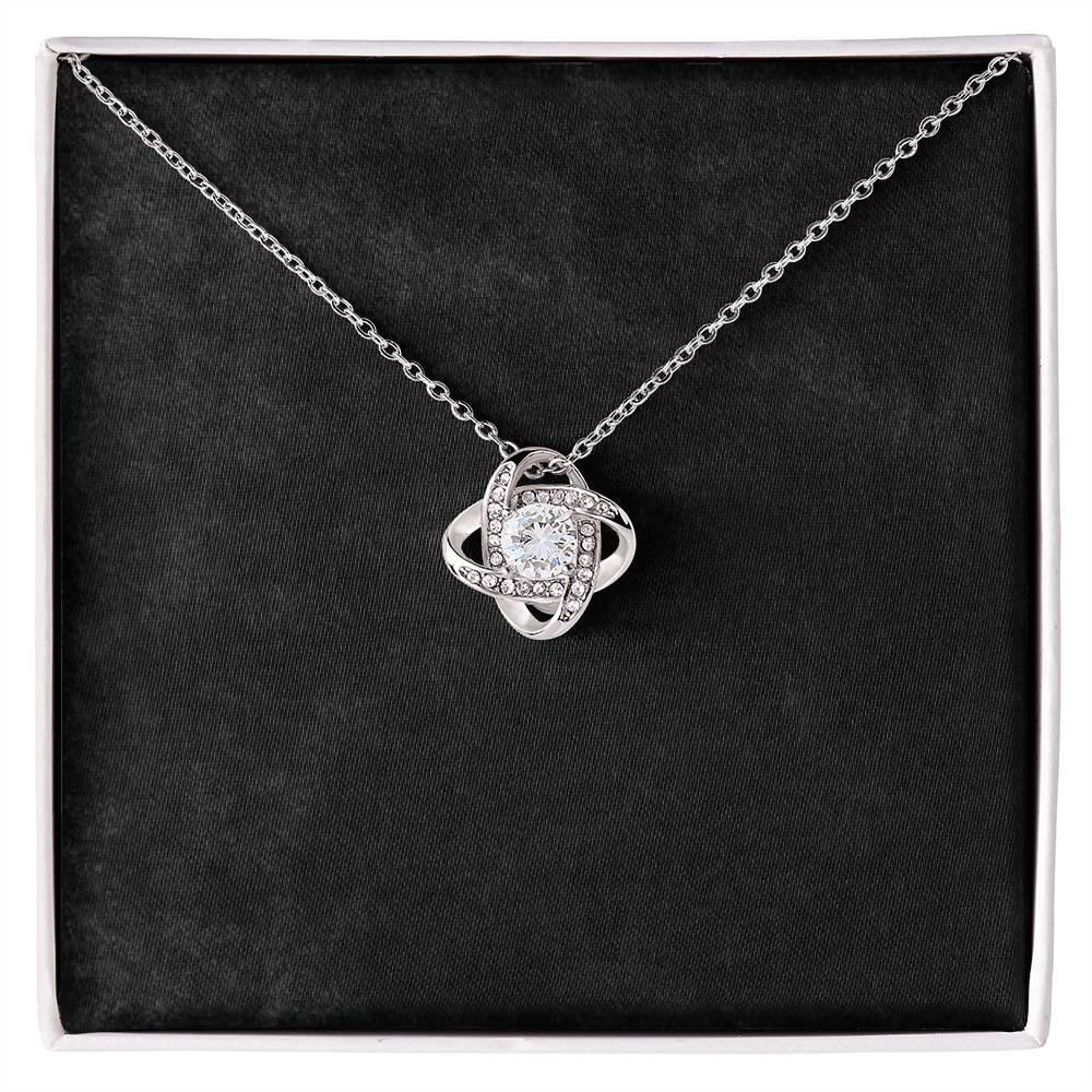 Imagine her reaction receiving this beautiful Love Knot Necklace. Representing an unbreakable bond between two souls, this piece features a beautiful pendant embellished with premium cubic zirconia crystals. Surprise your loved one with this gorgeous gift today!